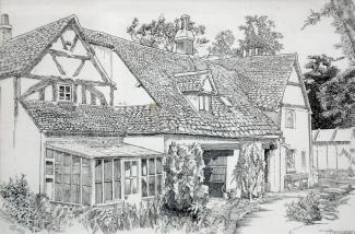 Chris is also of the opinion that the earlier painting – ‘Garden Cottage – Beaumanor’ was not painted by a relative of Col. Minshall, but was possibly commissioned by him, probably in the 1960’s. Col. Minshall did commission two splendid pen & ink drawings of the front and back of Golden Cottage by A. Warbis(?). These are first class sketches, showing that externally nothing much has changed, except that the conservatory at the rear was no longer there when the Kessling family bought Golden Cottage in 2002.