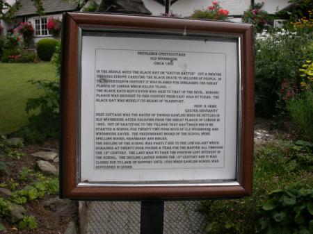 Sign at the gate of Pestilence Cottage where Thomas Rawlins lived in Woodhouse.