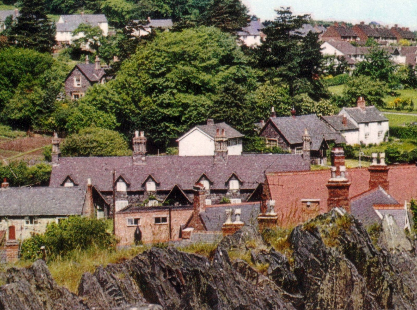 Back to c.1950's. Taken from the rocks above the Stone Hole, Slaters Cottages roof line can be seen, with Bird Hill House nestled among the trees behind. To the right is the old infants school. Next to it is a white cottage. This was eventually demolished to make way for Paterson Drive.