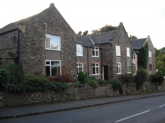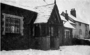 The next photo shows the end of the school. (Compare this with the original 1843 school. The bell tower which was originally on the end of the building is now facing the road). The Stone Hole is on the right.