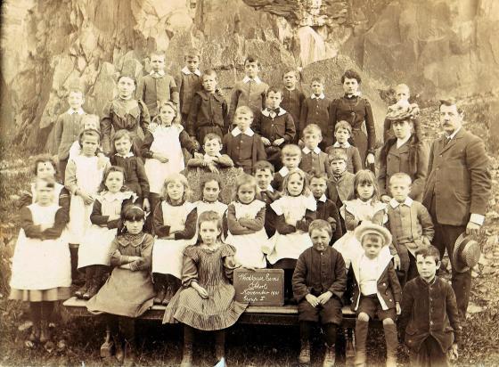The second would be in the early 1900's, and appears to be the infants, with a teacher, outside the school.